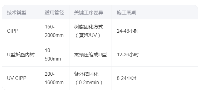 管道非开挖内衬修复技术因其高效、环保等特点,已成为现代城市管网维护的主流方式。结合不同修复方法的特点整理而成: